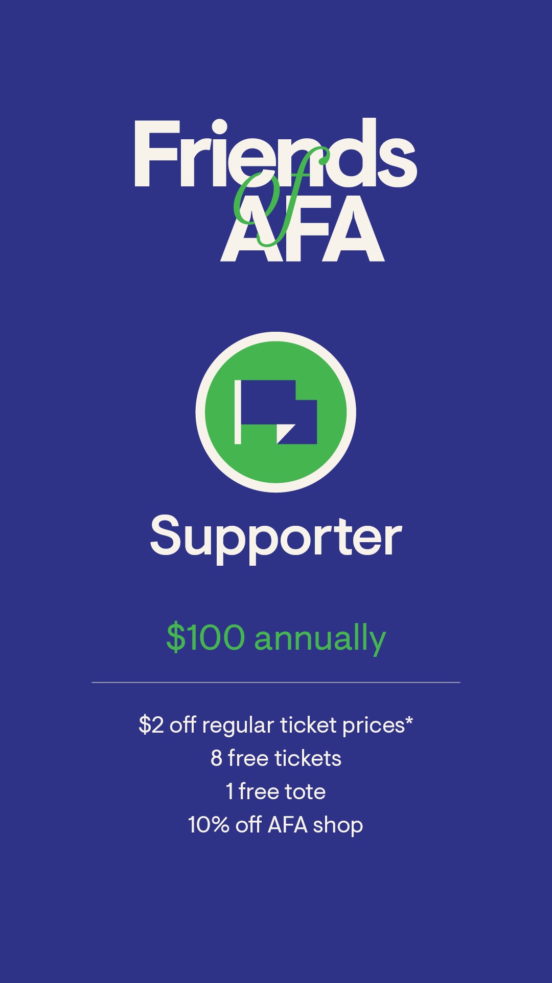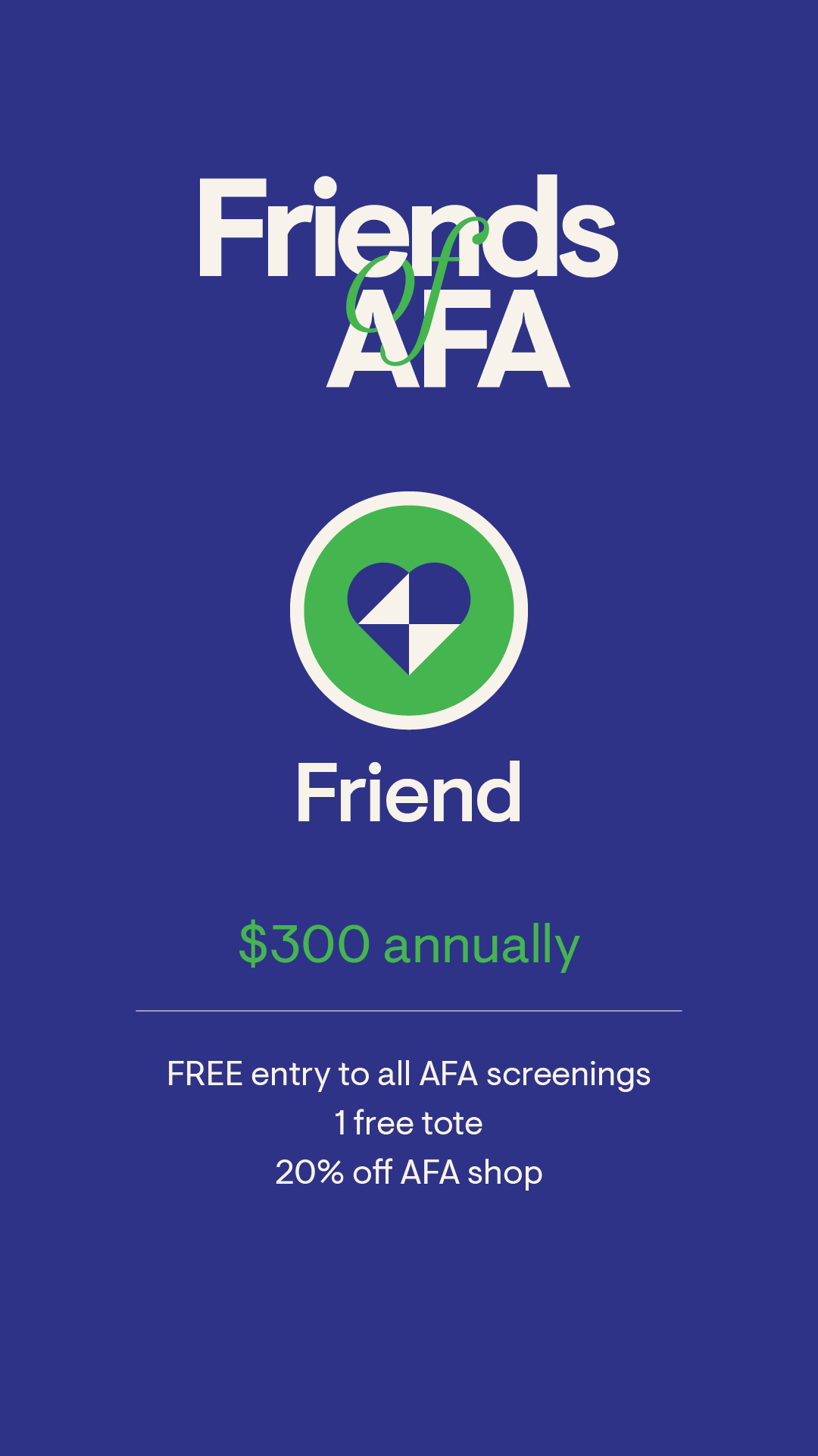 The logotype seeks to convey a sense of friendship and is typeset in a bold san serif typeface accompanied by a contrasting serif typeface with organic curves. The letter ‘of’, typeset in a serif typeface, is intertwined with the san serif letters to invite and bring ‘Friends’—the audience and ‘AFA’—the archive together. Accompanying the logotype is a set of three graphical symbols carefully designed to represent three different membership tiers (Explorer, Advocate and Friend).