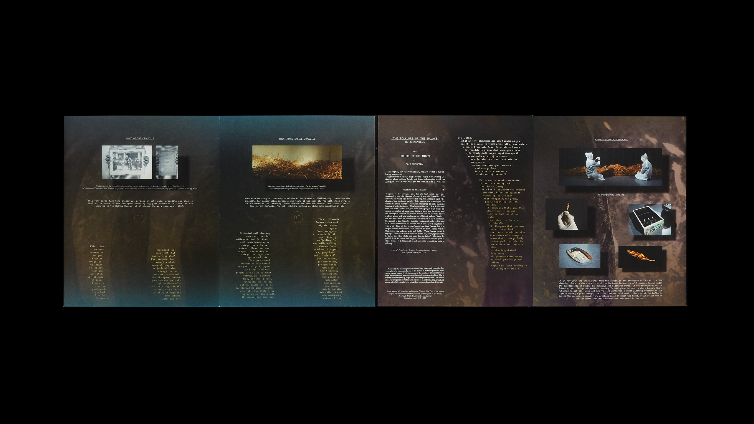 Seeding Stories: A Guide to the Interior of a Salt Water Crocodile is a collaboration between The National University of Singapore Museum (Curator Siddharta Perez) and The MA Programme in Visual Cultures, Curating and Contemporary Art, Department of Art, Aalto University Finland (Lucy Davis, Professor of Artistic Practices).